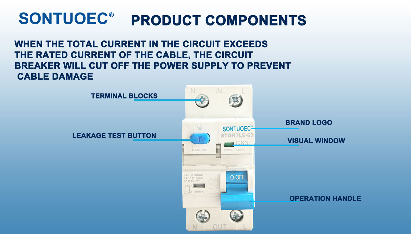 การป้องกันการโอเวอร์โหลด: เมื่อกระแสไฟฟ้าในวงจรเกินค่าที่กำหนดของ STRO7LE-63 RCBO มันจะตัดวงจรโดยอัตโนมัติภายในระยะเวลาที่กำหนด เพื่อป้องกันไม่ให้วงจรและอุปกรณ์ร้อนเกินไป จึงหลีกเลี่ยงไฟไหม้และความเสียหาย